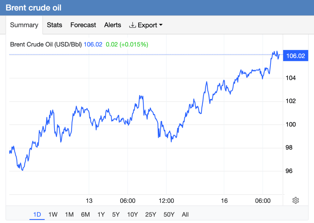 - Oil was at $106 per barrel this morning.